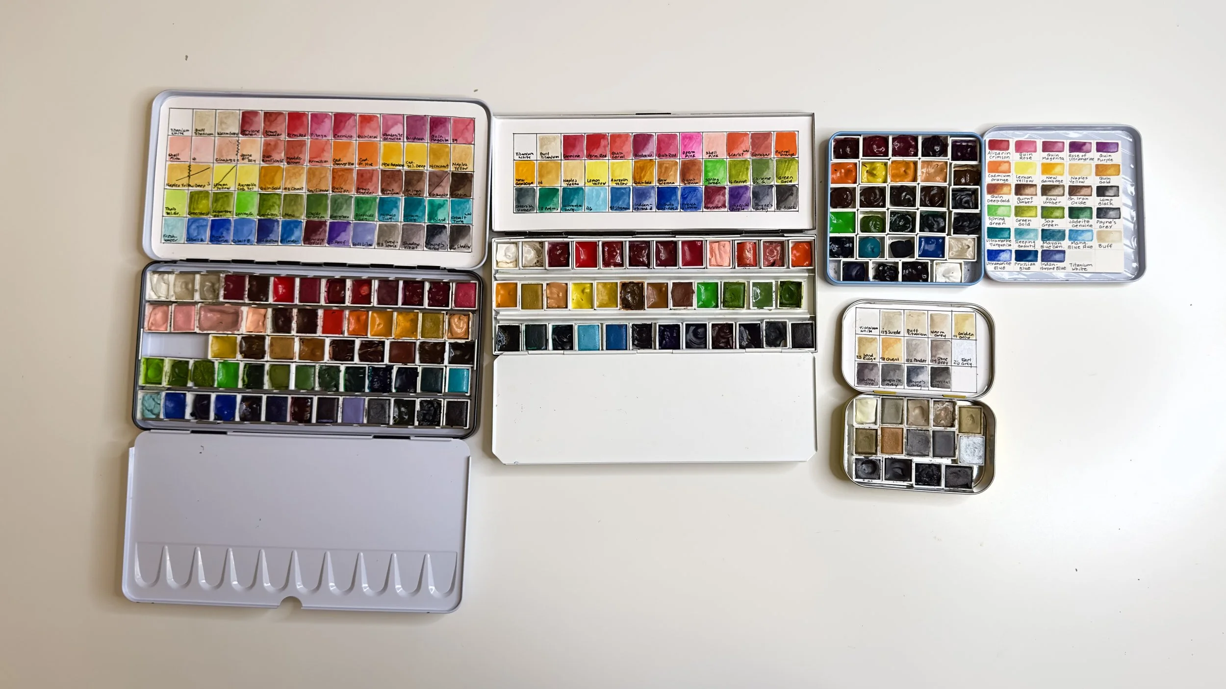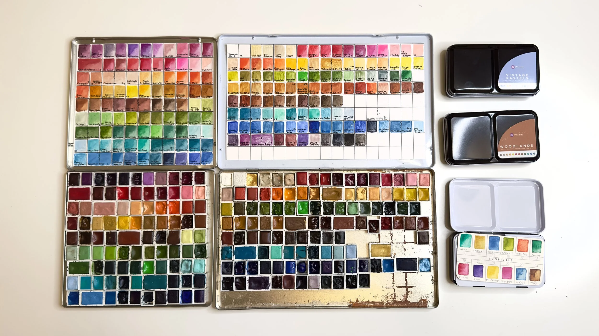 You can buy empty palettes from art supply stores online and create your own special palette of colors that appeal to you. One tip is to swatch your colors and put the strip in your palette so you can see what you are using. I used to swatch and put the name of the color on the swatch, but I don’t always have space to do this. I’ve also created a few travel sized palettes for on the go from game or mint tins. I love creating palettes.