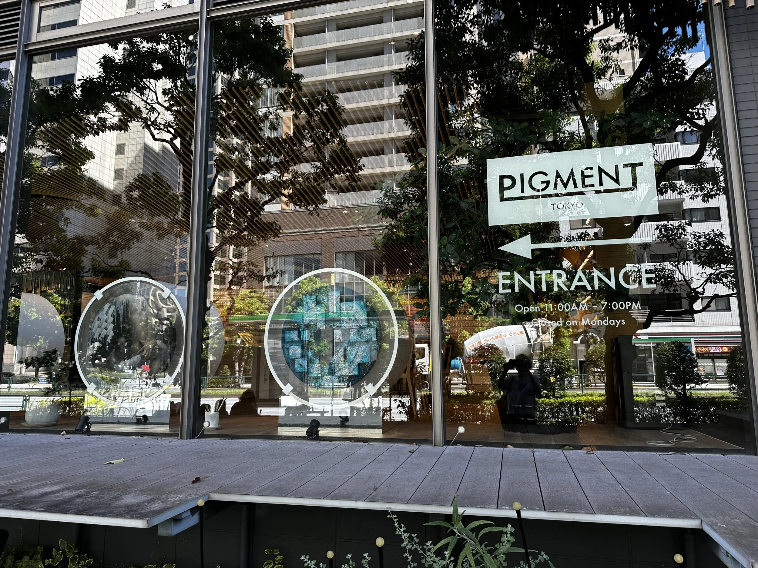 Look at the gorgeous bottles of color on the wall of Pigment in Tokyo