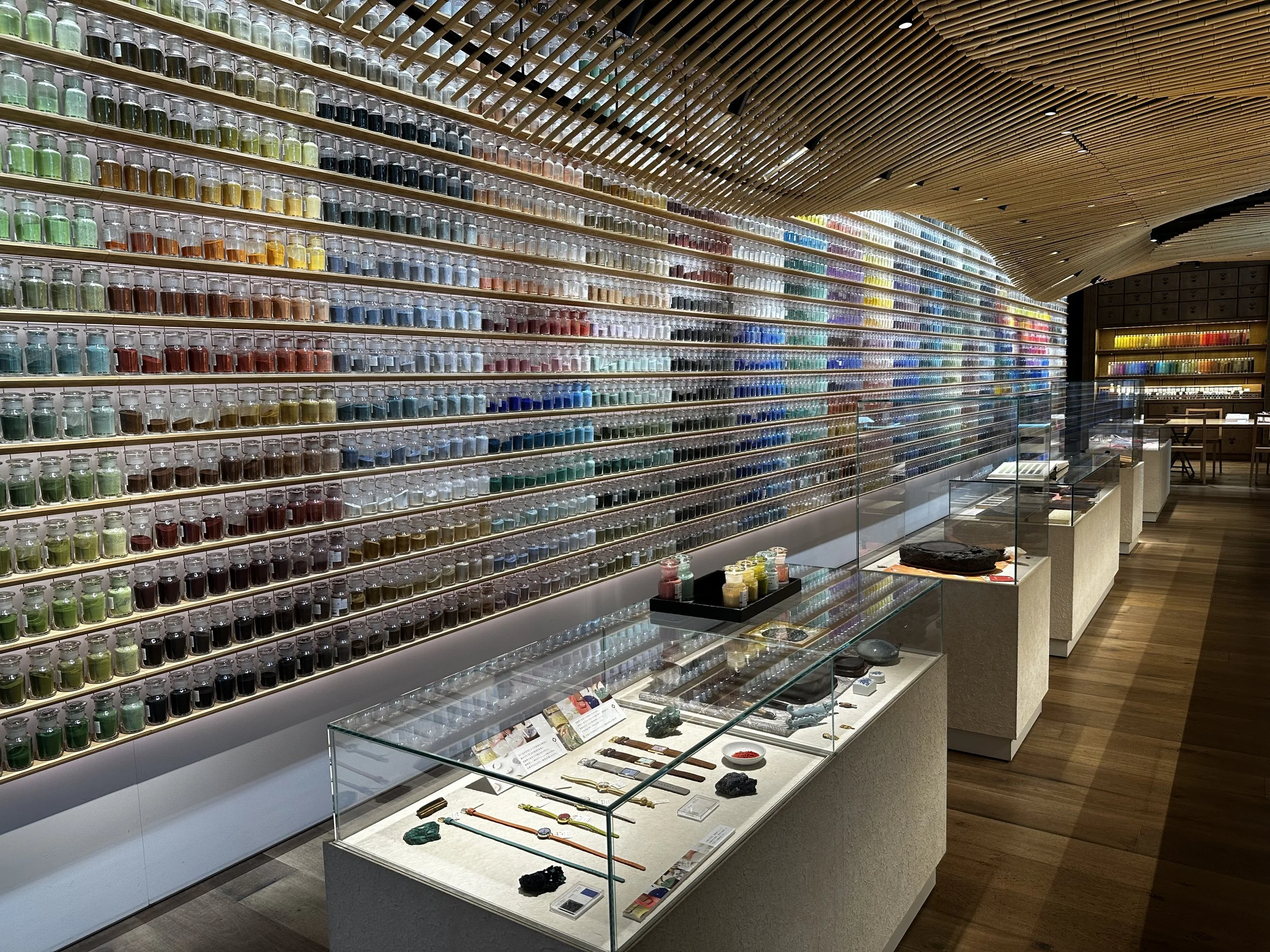 Pigment isn’t a store, it’s a pilgrimage. And my Fitbit proves it. The day I visited I walked up 77 flights of stairs and 7.5 miles - mostly due to walking to Itoya first followed by a very long Subway detour which took me to where I needed to board a train out toward the Handea airport Tokyo Bay area. When I finally arrived I was greeted by a warm breeze off the water, which heightened the feeling of being somewhere special. I circled the store, went in, and immediately felt in awe. Hundreds of gorgeous bottles of colored pigments, arranged in color families lined the back wall. To the left were framed shadow boxes with various types of gum arabic, and another wall showcased Japanese paint brushes. I heard myself talking in hushed tones, and the gentleman who helped me was equal in volume. Wearing white gloves, he carefully removed the bottle with the color I asked for, and placed them together in a wood box for me to examine. It took me some time to decide, and he never rushed me - although I was internally rushing myself! After selecting six fine medium toned colors, I asked for a crowning color - a rusty red. Bringing it down from its high perch while using a ladder, he turned the bottle around, then told me the entire bottle had already been purchased. Alas, my collection would not be completed. I searched and searched for another to take its place, but none fit, so I decided I would only bring home 6 colors. He weighed the powders and slipped them into tiny bags, I paid, and was off. But, before I left, I timidly asked if I could take a photo, which he kindly obliged. You see, there was a sign stating no photography allowed, so I was elated to be able to take this single photo of the 100s of bottles of paint on the wall (plus the one of my purchase). Lest my writing fail me, Pigment was my absolute favorite art destination. Why? There’s something inside every artist - or at least inside me - that wants to create my very own unique color palette to paint with. And now I have it (though I was wishing I had purchased about 20 more colors). So if you go to Tokyo, please go to Pigment. They open at 11 am, and you won’t regret going.