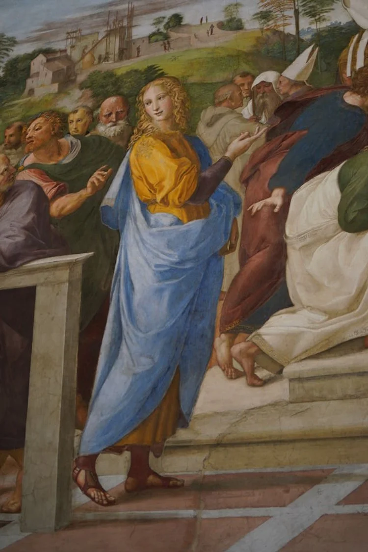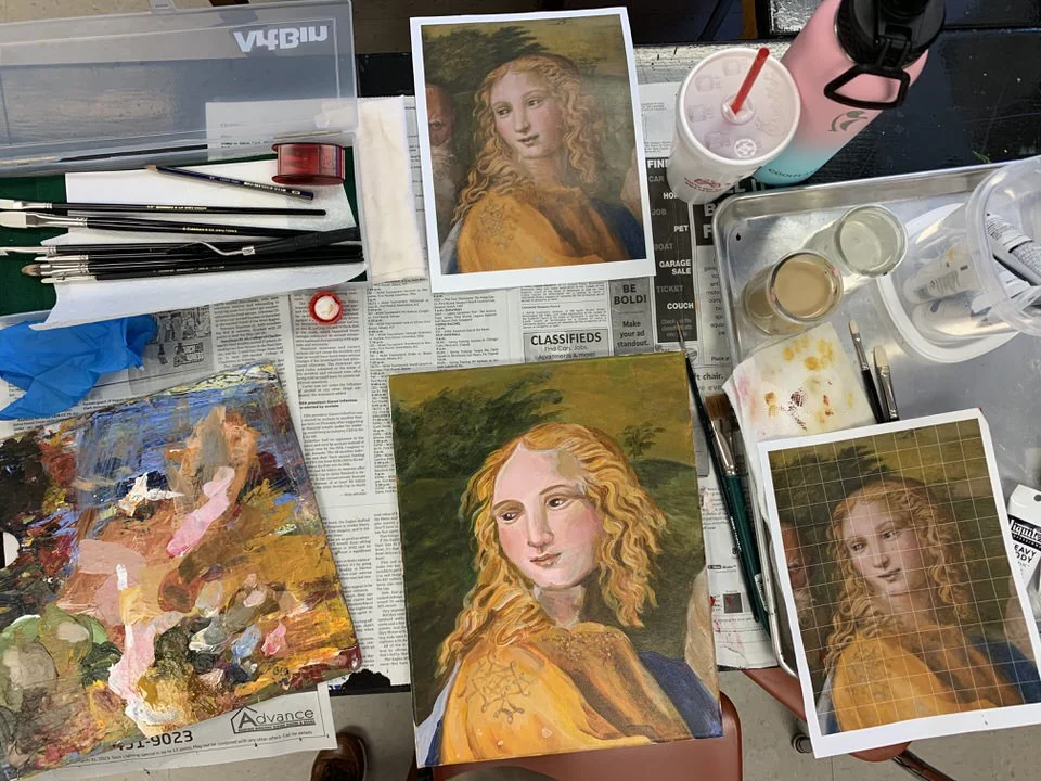 If you’ve read this far, you probably want to go to Greece and Rome. I hope your dreams come true! When the kids went back to school, the art teacher, who was along on the trip, arranged a painting day. I joined them and attempted to paint this girl from Raphael’s room. It was fun but challenging as I’m not trained in portrait painting.